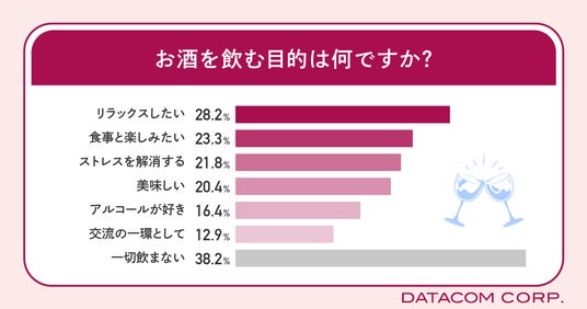 ・お酒を飲む目的は「リラックスしたいから」、「食事を楽しみたいから」