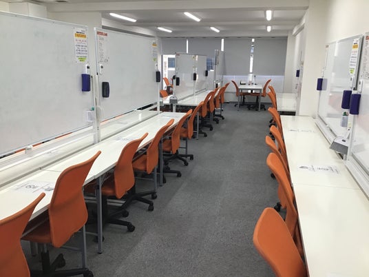 新教室では、従来の教室よりも広々とした空間へ拡大移転。生徒一人ひとりがゆとりを持って学習に取り組める環境を整えました。 静かで集中できる環境はもちろん、学校帰りにも立ち寄りやすい駅近の立地で、中高一貫校生の「第二の勉強部屋」としての機能を強化しています。