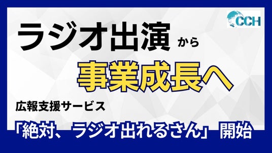 株式会社CCH(本社:東京都板橋区、代表取締役社長:高鍬仁一、以下CCH)は新たに、ラジオ出演を通じた広報支援サービス「絶対ラジオ出れるさん」の提供を開始しました。