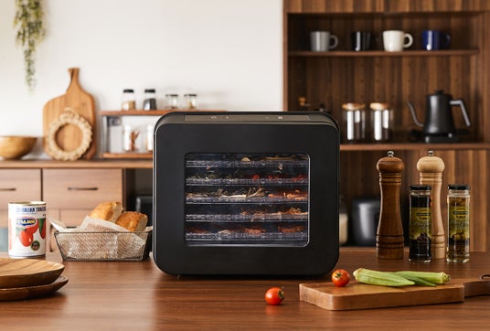 フードドライヤー本体は、食材の水分を飛ばして旨味を凝縮させるドライフードから、ヨーグルトや甘酒などの発酵食品まで、家庭で手軽に作れる調理家電です。広範囲な温度設定と長時間のタイマー機能を搭載し、ペット用の無添加ジャーキーやローフード作りにも対応。食生活を豊かにする一台です。