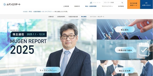 株式会社ムゲンエステート(本社:東京都千代田区、代表取締役:藤田進一)は、2025年度株主通信を発行いたしました。