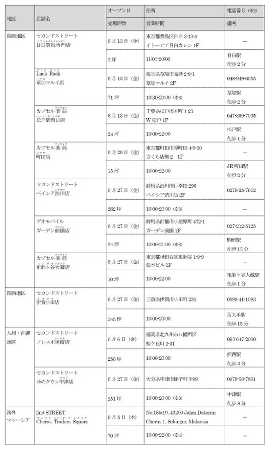 国内外の「セカンドストリート」を含む4業態、合計11店が新たにオープン!