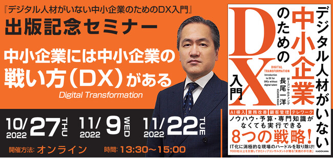 そこでこの度、弊社代表・長尾一洋が、日本の99%を占める中小企業の生産性向上の処方箋として、『デジタル人材のいない中小企業のためのDX入門』(KADOKAWA)を上梓します。
