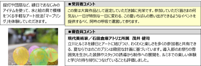 ■「たらす、まぜる、うつしとる–舞台は縁日!マーブリング体験– 」/ グループ 「あうん」 (代表:石田 優奈)