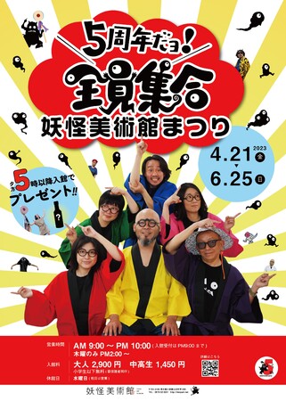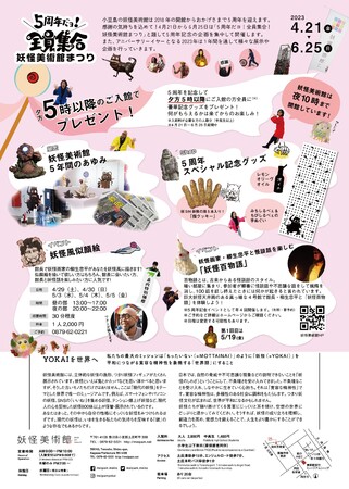 2018年の開館以来、コロナ禍による長期休館などもあり、5年間はコロナに阻まれた5年でもありました。2023年は、リアルな場でお会いできる機会を設けたいと考え「5周年だョ!全員集合!」の掛け声に、全国から小豆島の妖怪美術館に集まっていただけることを願い本企画を開催します。また、本企画を皮切りに2023年は5周年関連イベントを多数ご用意しています。