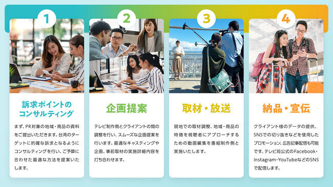 2007年の放送開始依頼、台湾のお茶の間番組としての愛されてきた番組知名度とFacebookフォロワー275万人を超える「食尚玩家」のSNS発信をかけ合わせた影響力と当社が培った国内外への地域PRのノウハウにより、日本の地域・グルメ・レジャーなどの魅力を台湾の消費者に訴求いたします。