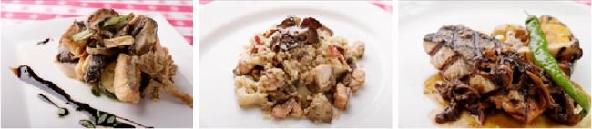 「秋鮭と根菜 ポルチーニのリゾット 黒トリュフをのせて」(写真中央) 2,400円