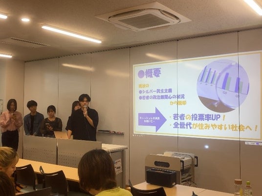 本プロジェクトでは、auフィナンシャルサービスが設定した「クレジットカードを含むキャッシュレス決済を用いて、少子高齢化によって生じる問題を解決するための施策を提案してください」という課題に対し、参加学生が解決案の提案を行いました。学生は全6回のプロジェクトの中で、ゼミ内で学んだリーダーシップ理論を活用し、チームとして仮説立案からデータ収集・資料作成を行い、最終回では提案のプレゼンテーションを実施しました。