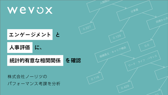 People Tech (テクノロジーによって人の可能性を拡げる) 事業を展開する株式会社アトラエ(本社:東京都港区、 代表:新居佳英、東京証券取引所プライム市場:6194)は、組織力向上プラットフォーム「Wevox(ウィボックス)」にて、湯まわり設備メーカーの株式会社ノーリツ(本社:兵庫県神戸市、代表:腹巻知、東京証券取引所プライム市場:5943)協力のもと、エンゲージメントと考課の相関関係に関する分析を行った結果、統計的に有意な相関関係があったことをお知らせいたします。