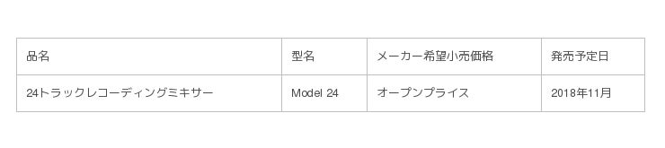 『Model 24』は、マルチトラックレコーダー、ミキサー、オーディオインターフェースとして、ライブ、リハーサル、レコーディング等のあらゆる場面で柔軟に対応し、今日のミュージシャンやエンジニアなどの多様なニーズを満たす新たなレコーディングソリューションです。