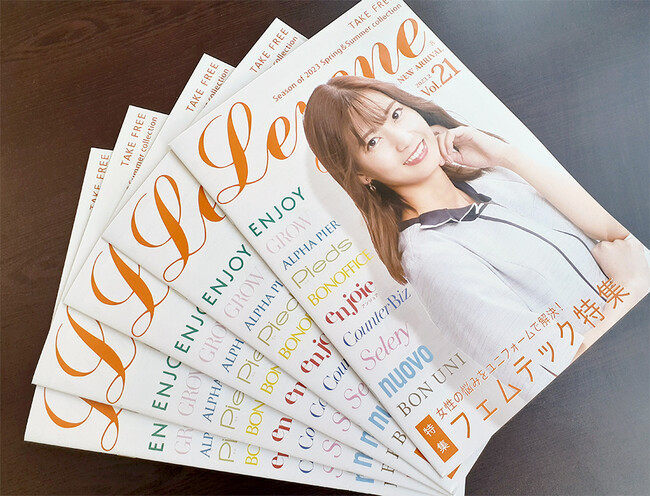 業務用ユニフォーム&関連品の企画・販売を行う株式会社ユニフォームネットが発行する「Lezene(レゼン)」は、人気事務服メーカーの新作を一冊にまとめたオリジナルマガジンです。