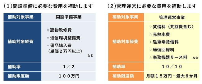 ・開設のための費用から家賃などの運営費用まで幅広く支援します!