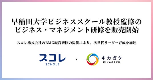 AI・機械学習を含めた先端技術に関する教育事業を展開する株式会社キカガク(本社:東京都渋谷区、代表取締役社長:大崎 将寛)は、スコレ株式会社(本社:東京都新宿区、代表取締役:須藤 奨)と代理店契約を締結し、早稲田大学ビジネススクール監修の経営シミュレーションを用いたビジネス・マネジメント研修(BMG経営研修)の提供を開始することをお知らせいたします。