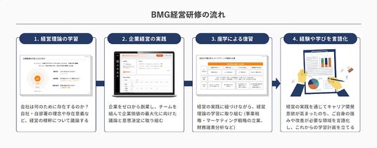 BMG経営研修は、企業経営の全体像を約5年分のシミュレーションを通じて実践的に学ぶことができる教育プログラムです。