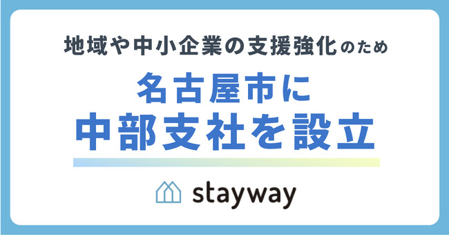 株式会社Stayway(本社:大阪府大阪市、代表取締役: 佐藤 淳、以下「Stayway」)は、2023年7月1日より、新たな拠点として愛知県名古屋市に中部支社を開設したことをお知らせします。Staywayが開発・提供する補助金DXサービス「補助金クラウド」において、地域金融機関や士業・商工会等からの提携や協業の引き合いが急速に増えており、中部支社の開設によって、パートナー企業との連携を推進し、より多くの地域企業を支援するための体制を拡充してまいります。