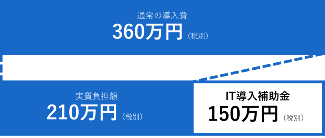 360万円(30万円×12か月)-150万円(IT導入補助金)=実質負担210万円(税別)