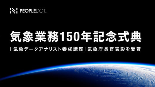 株式会社ピープルドット(本社:東京都千代田区、代表取締役社長 兼 CEO:堅田 洋資)は、「気象業務150周年記念式典」(2025年6月2日開催)において、当社が開発・監修した「気象データアナリスト養成講座」による人材育成を通じた気象データの高度利活用促進への貢献が認められ、気象庁長官より表彰を受けましたのでお知らせいたします。