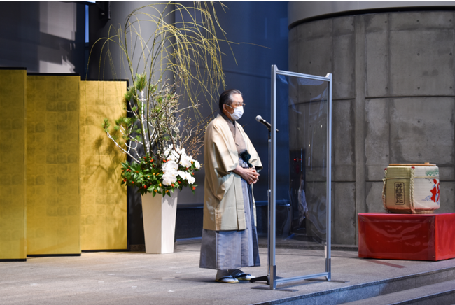 会場の皆様にお酒を持っているフリをしていただき、心の中で「乾杯」とご発声いただきました。