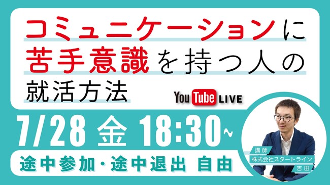 障害者雇用支援を通じて“誰もが自分らしく生きる社会“を目指す株式会社スタートライン(本社:東京都三鷹市、代表取締役:西村賢治)は、YouTubeチャンネル「MyMyチャンネル」にて、就職を目指す障害者に向けたYouTubeライブセミナーを開催します。
