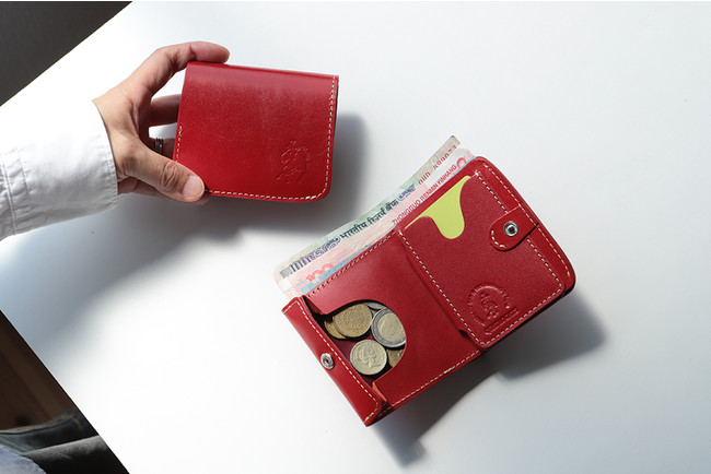 女性に人気の定番カラーから”レッド”が登場。小さいふ専門店が作った”左利き専用”のミニ財布。