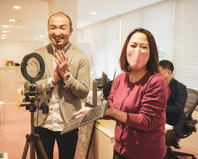 オンライン会議アプリZOOMを使用し、リモート参加は在宅勤務と試着体感サロンだけでなく、本社内でもオンラインで結びました。密を避ける為の工夫として、本社内でも各フロアに分かれ自席のPCから各自オンラインでの参加となりました。