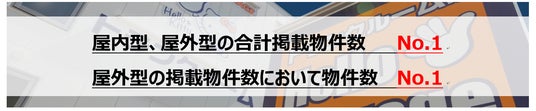 ※2022年3月期 指定領域(※)における市場調査 調査機関:日本マーケティングリサーチ機構 ※屋内型、屋外型の合計掲載物件数・屋外型の掲載物件数において物件数 No.1 ※「指定領域」=レンタルスペースの物件数の情報をWeb で公開している 8 社(エリアリンク社独自調査。2022年3月時点のウェブ上での屋内型、屋外型の合計掲載物件数・屋外型の掲載物件数上位8社)を対象として、物件数を No.1 検証調査