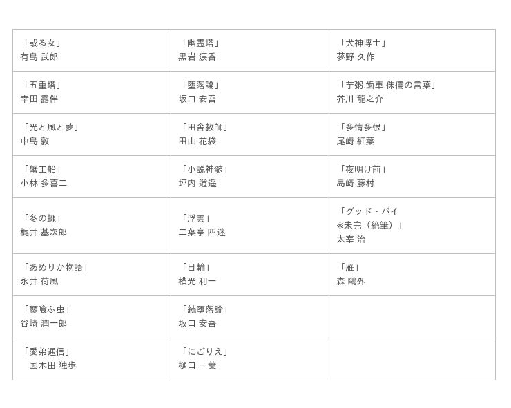 Amazon オーディブル(以下、オーディブル)は、この秋の読書週間(10月27日~11月9日)に合わせ、日本文学の巨匠らによる珠玉の22作品を『巨匠たちの特選文学集』として配信します。小林 多喜二の「蟹工船」をはじめ、谷崎 潤一郎、芥川 龍之介、太宰 治、森 鷗外、樋口 一葉などの作品を含むこれらの作品はポッドキャストにて配信され、オーディブル会員であれば追加料金なしで楽しむことができます。