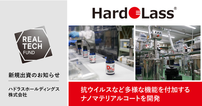 ナノテクノロジーに特化したナノマテリアルコートの広範な社会実装により、様々な社会課題解決を実現するべく、リアルテックホールディングス株式会社(所在地:東京都墨田区、代表:丸幸弘、永田 暁彦)が運営するリアルテックファンド*は、ケミカルベンチャーであるハドラスホールディングス株式会社(本社:東京都江東区、代表取締役社長:山本英明、以下「ハドラス社」)へ投資を実施したことをお知らせ致します。ハドラス社は今回の調達資金をもとに、ナノマテリアルコートの研究開発を進めて参ります。