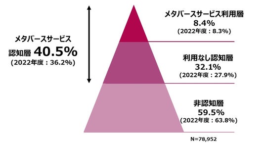 ●「メタバース関連サービスの認知」40.5%(前年比+4.3pt)、「利用経験」は8.4%(前年比+0.1pt)