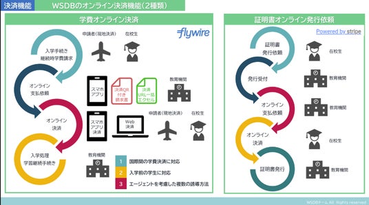 また、学費のグローバル決済サービスFlywire社と連携することで、WSDB-Tを利用し留学生の学費Web決済を行うことが可能です。