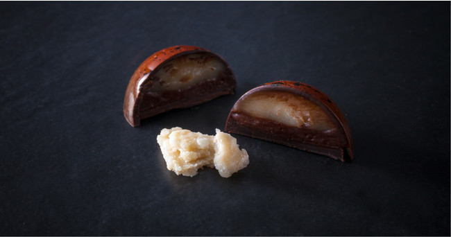 明治時代に多くあった煉瓦造りの酒蔵倉庫を再現した、酒蔵通り煉瓦館をイメージ。カカオ70%のチョコレートで包まれた芳醇な香り漂う酒粕キャラメルと吟醸酒ガナッシュを二層に仕立てました。