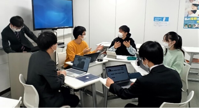 同校での授業は、キャンパスの異なる生徒をオンラインでつなぎ、これまで関わったことのない受講生同士の対話を取り入れながら実施。2022年10月から2023年2月まで全14回。授業後にはコーチング面談で進路や授業から得た気付きを話し合う機会を設けました。