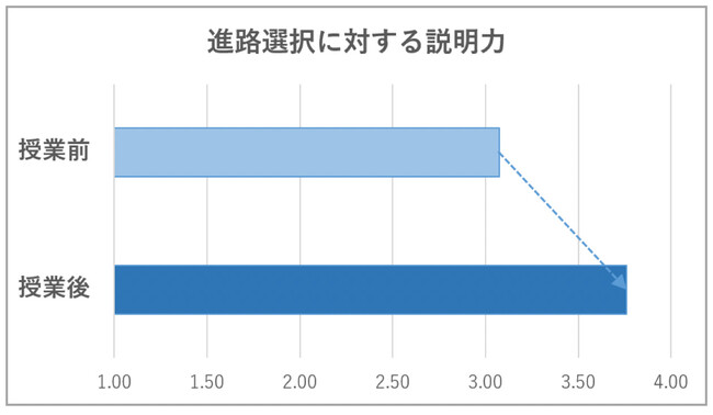プログラム受講後には生徒の進路選択への不安感が軽減し、親子でのコミュニケーションも増えるといった、ポジティブな変化が成果として見られました。