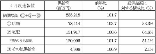 〇4月度の総供給高は、101.7%で店舗、宅配ともに前年超えでした。