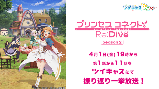モイ株式会社(本社:東京都千代田区 代表:赤松 洋介)は、同社が運営するライブ配信プラットフォーム「ツイキャス」にて、2022年4月1日(金)19時00分よりTVアニメ「プリンセスコネクト!Re:Dive Season 2」第1話から第11話を一挙放送することをお知らせいたします。