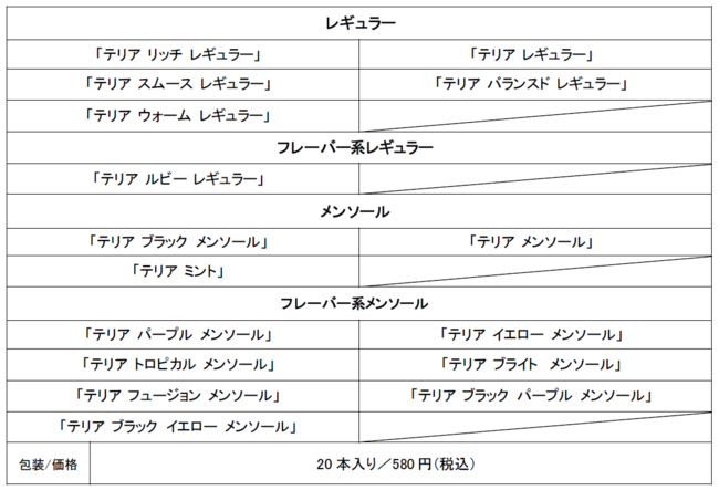 既に販売している「TEREA(テリア)」16銘柄は下記の通りです。