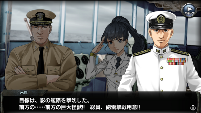 また、同コラボ期間中で、所持している全ての艦艇を駆使し、敵の撃破を目指すイベント「総力戦」が開催されます。マップ内に配置されている各ステージの敵に勝利することで、総力戦ポイントが獲得でき、獲得したポイントを使用することで、コラボ限定アイテムをはじめとした様々な商品と交換できます。さらに、本イベントは、蒼焔艦隊がゴジラに挑む模様を描いたオリジナルシナリオ付きとなっています。