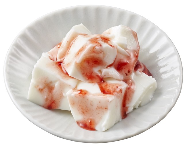 果肉たっぷりの真っ赤なストロベリーソースに、フルーツや花を想わせる華やかな香りの阿里山 ウーロンティー。祝祭感溢れる春色のミルクティーに合わせた、とろぷる食感の杏仁豆腐も春こそお楽しみいただきたいトッピングです。