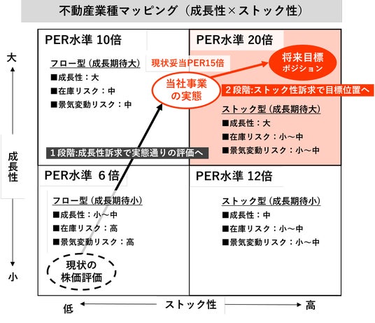 ↓の図は不動産業界におけるPERの高低について認識イメージを図式化したものです。