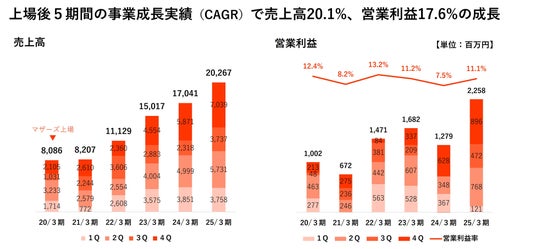 ランディックスは、上場後の5年間で年平均20.1%の売上高成長をし、売上も利益も2.5倍程度に成長しました。