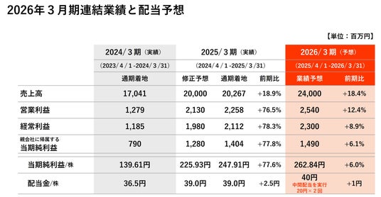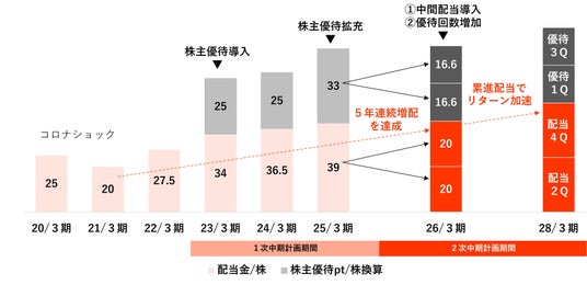 25/3期の本決算において配当の累進配当&中間配当開始、および株主優待の回数増加を発表しました。