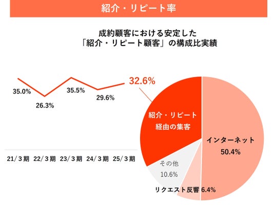 過去20%を超過しており、今後も紹介・リピート顧客を増やしていくことで、このストック性を強化していきます。