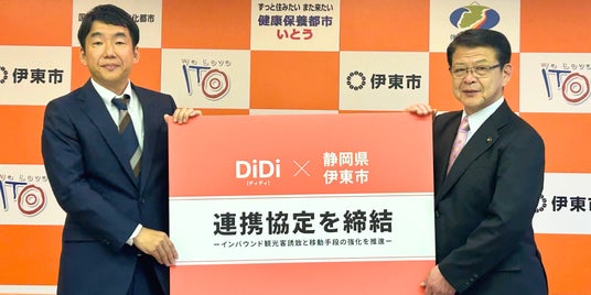 静岡県伊東市(市長:小野達也)とDiDiモビリティジャパン株式会社(本社:東京都港区、代表取締役社長:和久山大輔)は、地域観光資源の発信力向上および、訪日観光客をはじめとする観光客の移動手段の充実を目的とした連携協定を締結しました。本協定を通じて、伊東市の観光地や施設へのアクセスを向上させ、観光需要の拡大に貢献してまいります。
