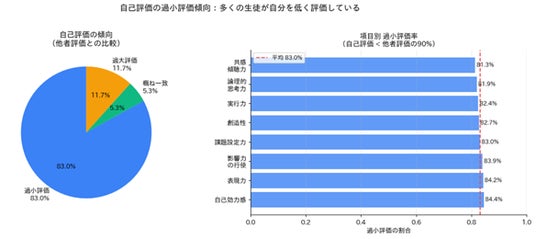 自己評価過小評価の割合(左:全体、右:項目別)IGS作成