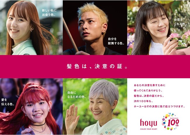 髪色を変えるとき、人は何かを決意しています。いつの時代も変わらない、髪色に込めたさまざまな想いや決意にホーユーはこれからも応えつづけていきます。これまでヘアカラー文化を創ってくださった全ての方へ感謝の気持ちをお届けします。