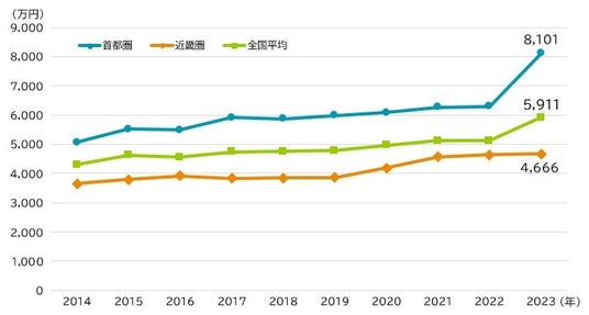 (出所)株式会社不動産経済研究所「全国 新築分譲マンション市場動向 2023年」よりミライ研作成