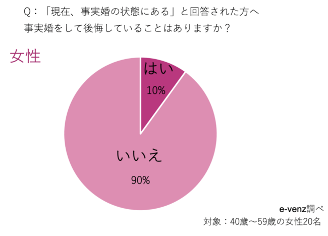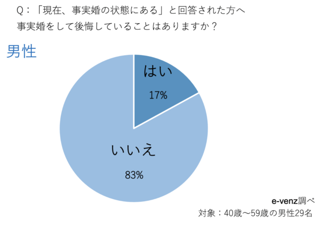 男性の17%、女性の10%が「事実婚を後悔している」と回答しています。