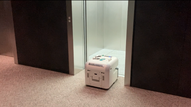 フロアで所定の作業を終えた際には、ロボット自体がエレベーターの呼び出し、乗車、目的階の指定、降車、目的階での清掃開始など、一連の動作を人の手を借りずに行うことができることを確認。管理スタッフがスタート起動するだけで、一つのロボットで複数フロアをまたいでの清掃が実現しました。