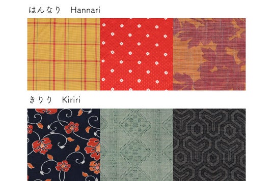 一つとして同じ柄はなく、すべてが一期一会。 掲載写真はあくまで一例です。色味の系統のみを〈はんなり〉〈きりり〉の2種からお選びいただき、どんな装いが届くかは、開くまでのお楽しみ。