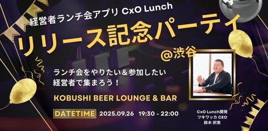 【9月26日(金)19:30~】経営者ランチ会アプリ CxO Lunchリリース記念パーティ(主催:ツキワッカ CEO/鈴木択実)
